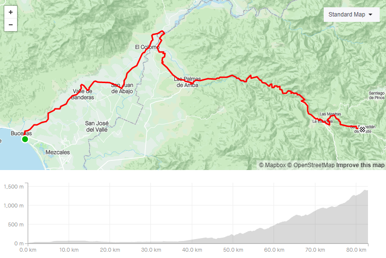 We would recommend the LAS PALMAS TO SAN SEBASTIÁN DEL OESTE. The ride to San Sebastian is a beautiful 81 km ride with 2050 meters of climbing!